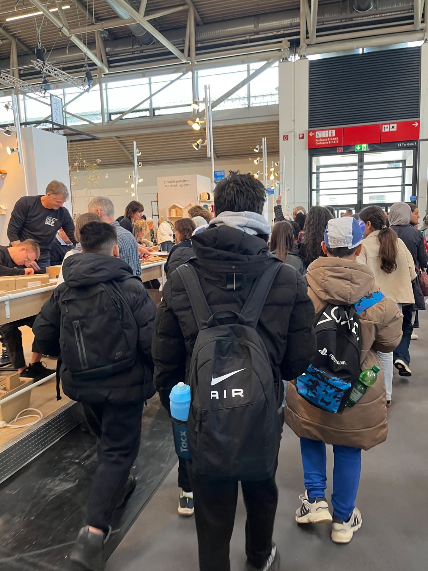 Die Klasse 6c besuchte zusammen mit Frau Seibold und Frau Bücherl auf der Internationalen Handwerksmesse den Mitmachbereich „Macher gesucht“ in der Halle C1. Bevor wir da ankamen, machten wir erst noch einen kurzen Rundgang durch andere Hallen. Die Größe der Messe und die vielen Menschen beeindruckten alle sehr. Angekommen in der Halle C1konnten die Schülerinnen und Schüler an vielen Ständen selbst aktiv werden und verschiedene Handwerksberufe ausprobieren. Zum Beispiel durften sie Fliesen mit Mosaiken mit Fliesenkleber bekleben, kleine Holzstücke schleifen, Nägel in ein Brett hämmern und sogar einfache Stromkreise ausprobieren. An anderen Stationen bauten sie kleine Werkstücke zusammen oder lösten knifflige Handwerks‑Spiele. Für jede gemeisterte Aufgabe bekamen die Kinder einen Stempel auf ihre Karte. Am Ende waren viele Stempelkarten gut gefüllt. Besonders spannend fanden die Schülerinnen und Schüler, dass sie vieles selbst ausprobieren durften. Viele waren sich am Schluss einig: Zur Handwerksmesse – und besonders zu „Macher gesucht“ – möchten sie gerne nächstes Jahr noch einmal kommen. Und da sich alle zuverlässig und gut verhalten haben, freuen wir uns jetzt schon darauf, wenn Frau Seibold uns das wieder ermöglicht.